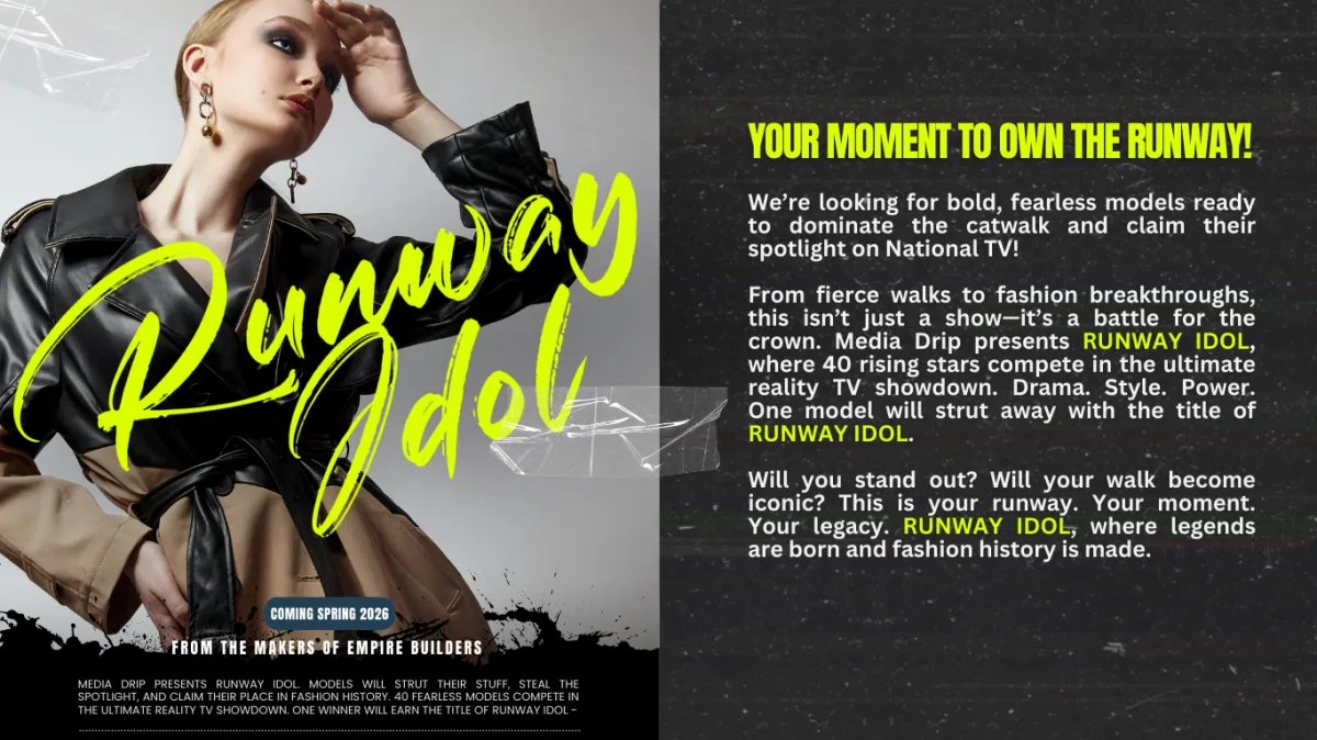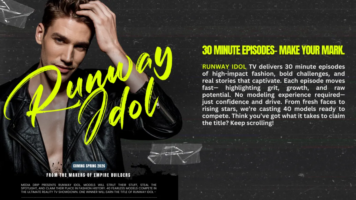 Runway Idol TV will stream on premier platforms and be backed by a full-scale promo push. Expect a press release campaign and social media rollouts that boost your visibility. With 40 contestants sharing the spotlight, the reach is massive—and your moment will shine.